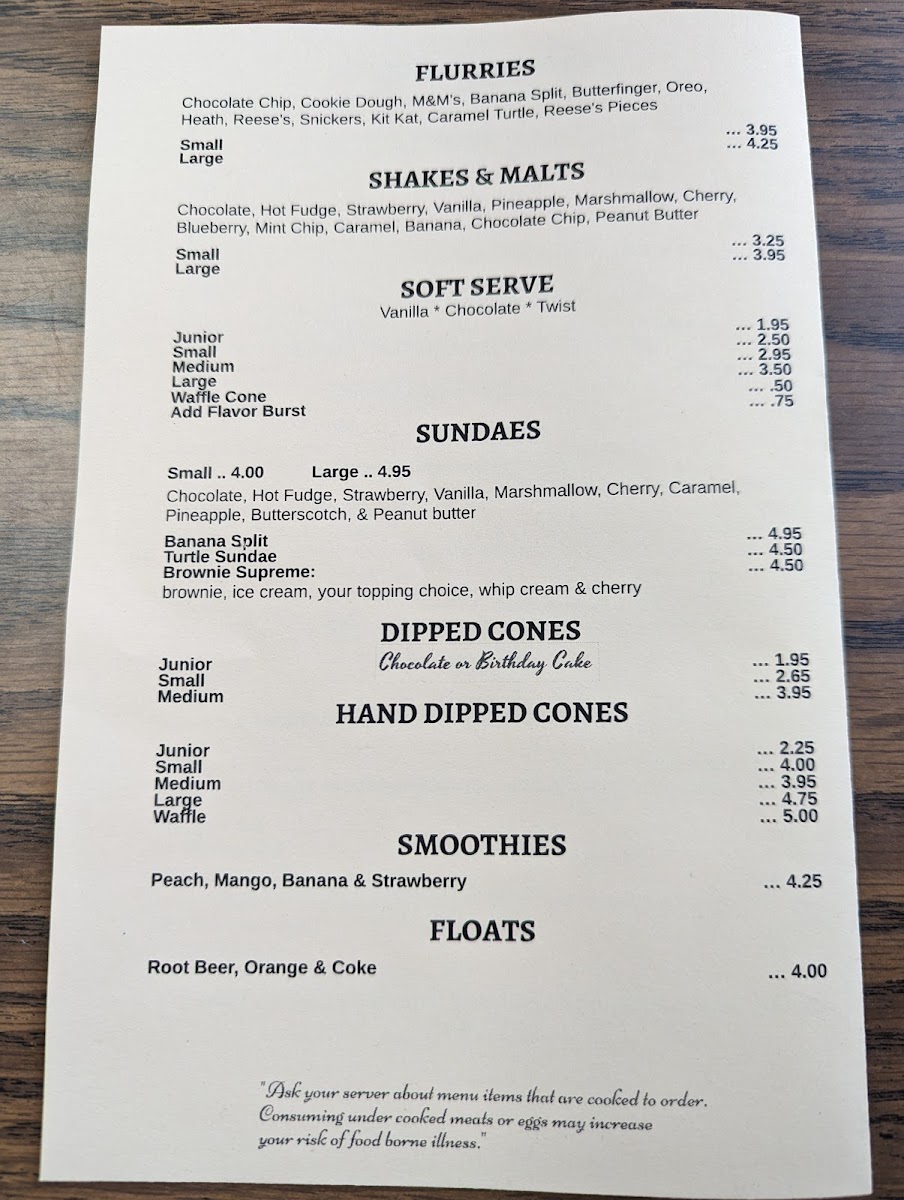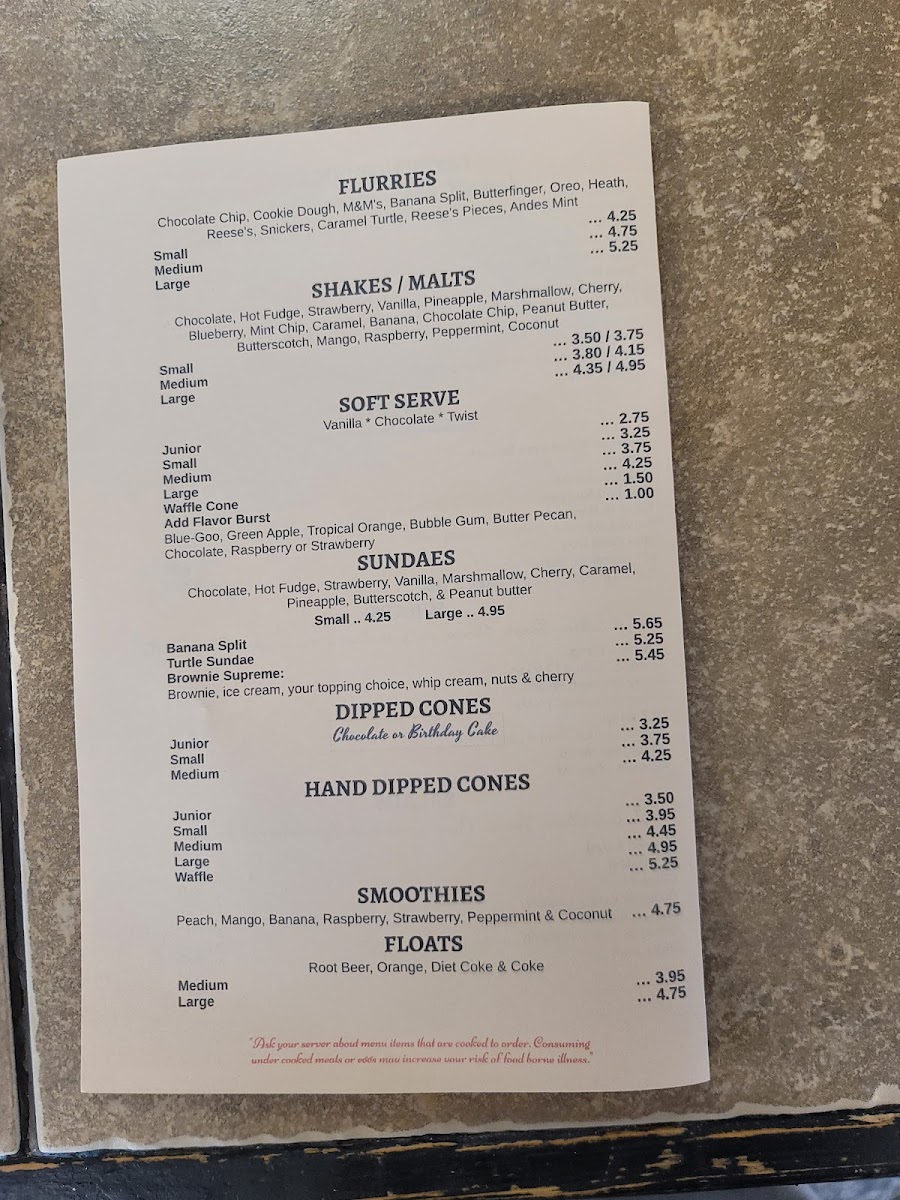 Vanilla soft serve with chocolate syrup and M&M pieces. Available in small, medium, or large.
