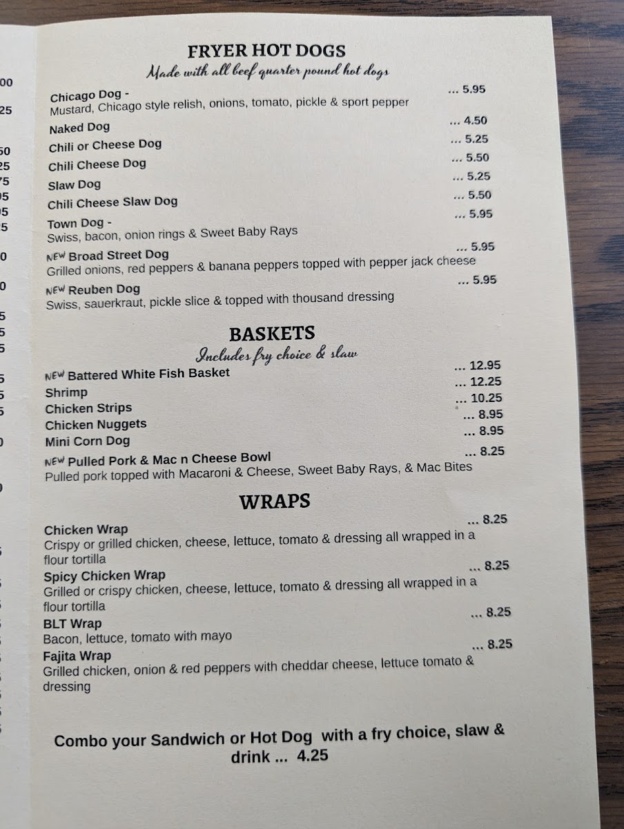 Mustard, Chicago style relish, onions, tomato, pickle & sport pepper with a dash of celery salt